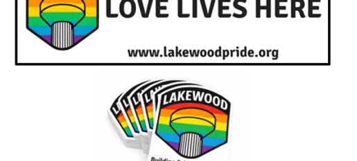 The Lakewood Pride Promotional Bundle includes stickers and a bumper sticker designed to make pride visible wherever you are. Each bundle helps fund local LGBTQ+ community programs and sends a clear message: Love Lives Here. Bold, welcoming, and purpose-driven.